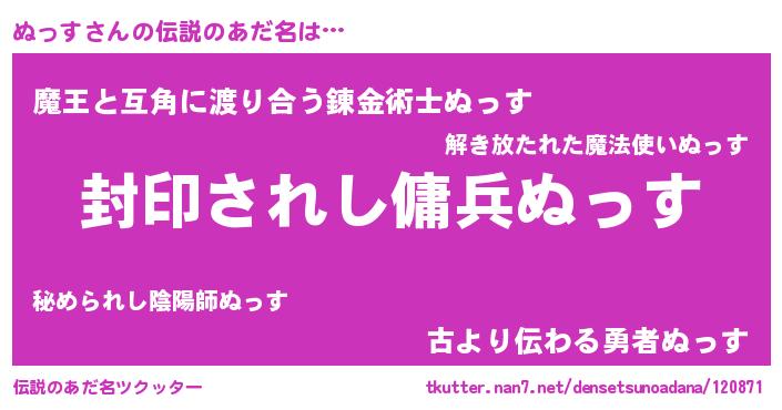 | 胡散臭い通販商品みたいなあだ名 | 『億万長者になれる水晶球…その名も「ぬっす」』 |