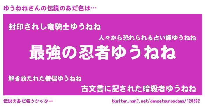 | ヒーロー風カッコイイあだ名 | 『最強戦士ユウネネ』『スーパーユウネネ』 |