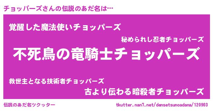 | ヒーロー風カッコイイあだ名 | 『スーパーチョッパーズ』『仮面チョダー』 |
