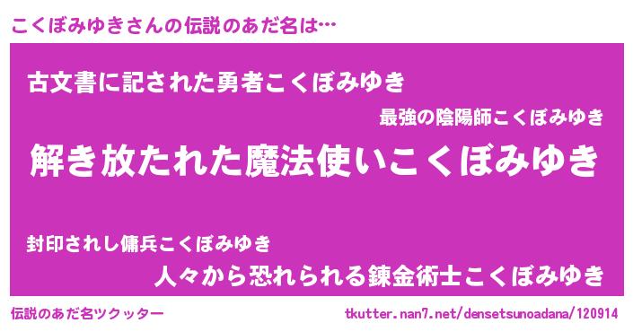 | ヒーロー風カッコイイあだ名 | 『幻影騎士コク』『ネオコクボミユキ』 |