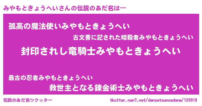 | ヒーロー風カッコイイあだ名 | 『スーパーミヤモトキョウヘイ』 |