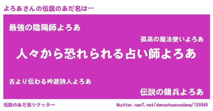 | ヒーロー風カッコイイあだ名 | 『正義の使者よろあ』『究極戦士ヨロア』 |