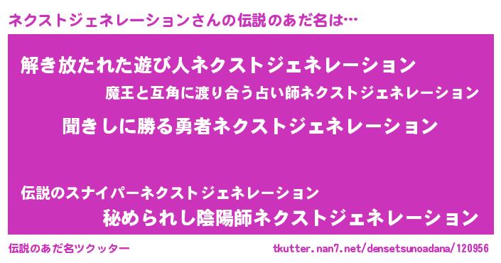 | ヘコむあだ名 | 『ネクストジェネレーション(遠い目)』 |