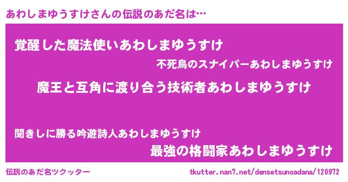 | 料理風あだ名 | 『あわしまゆうすけごはん』 |