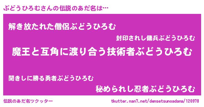 | ヒーロー風カッコイイあだ名 | 『愛の使者ぶどうひろむ』『魔戒騎士ブド』 |