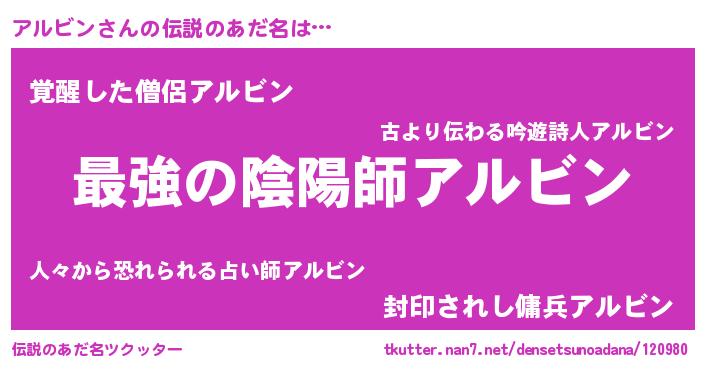 | ファンタジー風あだ名 | 『エターナルアルビンー』『アルフェル』 |
