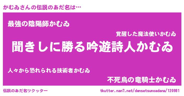 | 意味不明あだ名 | 『自称かむゐ』『永久保存かむゐ』 |