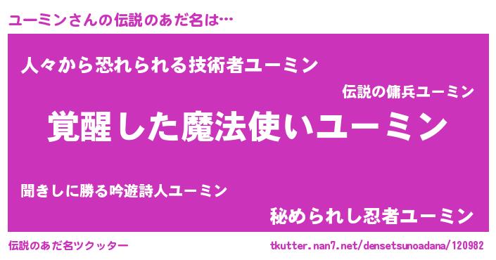 | ポケモン風あだ名 | 『ヒユーミン』『ユックウザ』 |