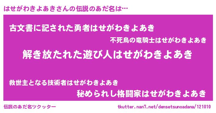 | 意味不明あだ名 | 『自称はせがわきよあき』 |
