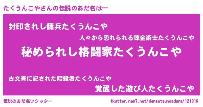 | ヒーロー風カッコイイあだ名 | 『ウルトラたくうんこやマン』 |