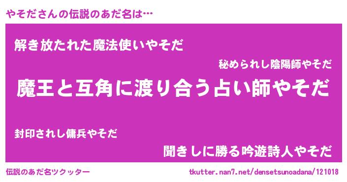 | ヘコむあだ名 | 『やそっぺ』『やそだ(苦笑)』『豆乳』 |