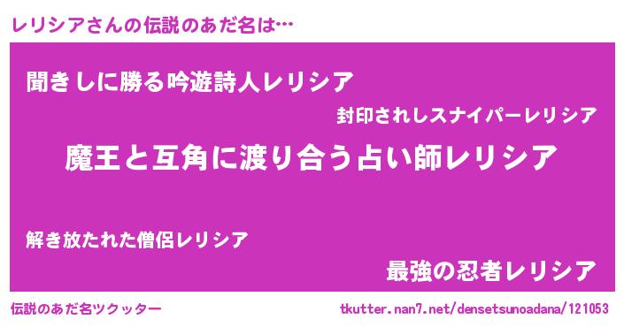 | ヒーロー風カッコイイあだ名 | 『愛の使者レリシア』『ネオレリシア』 |