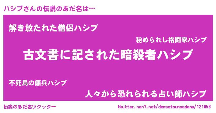 | 意味不明あだ名 | 『永久保存ハシブ』『自称ハシブ』 |