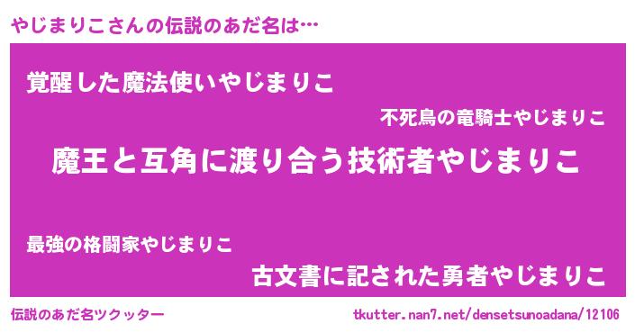 | ヒーロー風カッコイイあだ名 | 『愛の使者やじまりこ』『炎刃騎士ヤジ』 |
