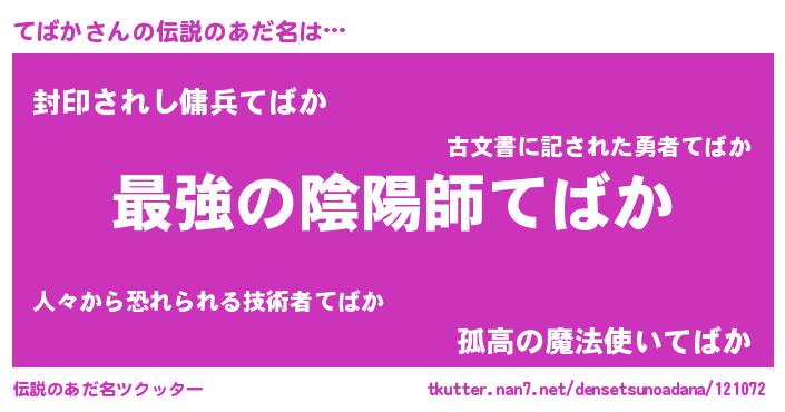 | 胡散臭い通販商品みたいなあだ名 | 『あなたにだけ特別に提供する世界で10本だけ現存している希少なブランデー…その名も「てばか」』 |
