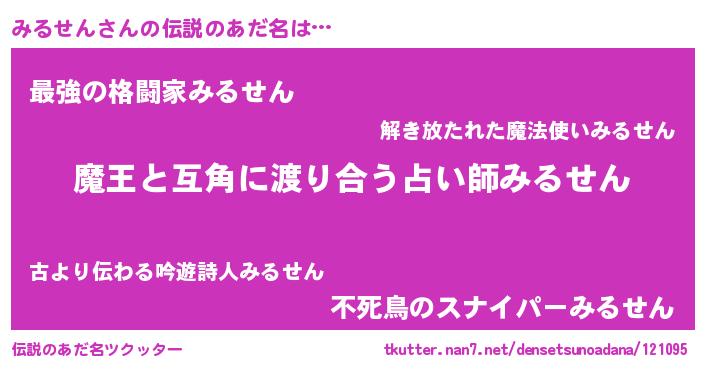| ヒーロー風カッコイイあだ名 | 『愛の使者みるせん』『スーパーミルセン』 |