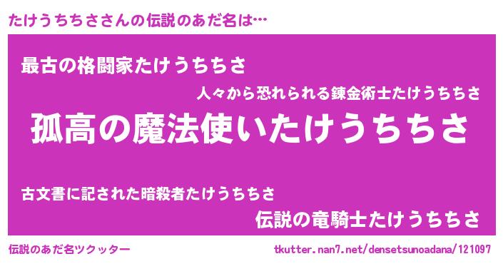| ヘコむあだ名 | 『たけを』『なまこ酢』『たけもー』 |