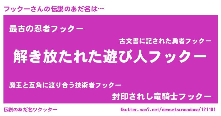 | ヒーロー風カッコイイあだ名 | 『幻影騎士フッ』『仮面フッダー』 |