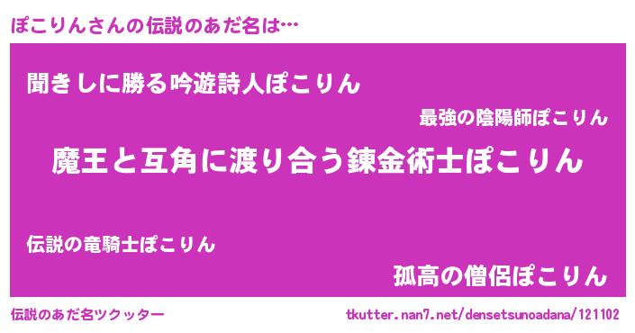 | 女子向けラノベタイトル風あだ名 | 『ぽこりんアンティーク』 |