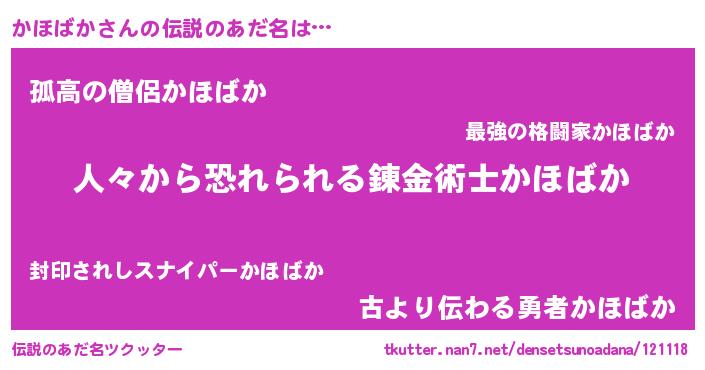 | 男性向けラノベタイトル風あだ名 | 『おまえをオタクにしてやるから、俺をかほばかにしてくれ! 』 |