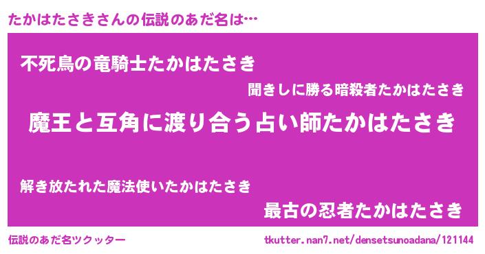 | 女子向けラノベタイトル風あだ名 | 『たかはたさき恋絵巻』 |