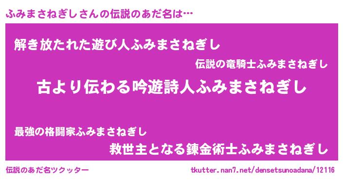 | 意味不明あだ名 | 『永久保存ふみまさねぎし』 |