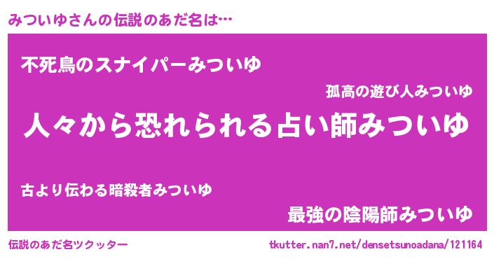 | ヒーロー風カッコイイあだ名 | 『仮面ミツダー』『愛の使者みついゆ』 |