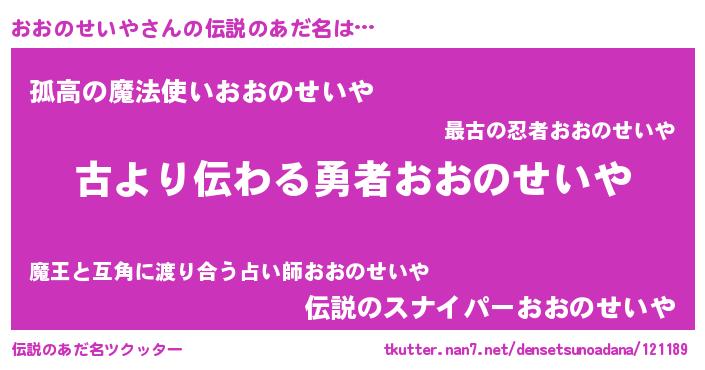 | ヘコむあだ名 | 『おおのせいや(苦笑)』『おおを』 |