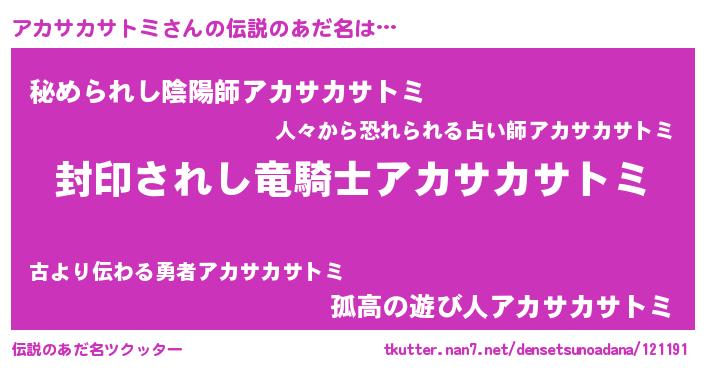 | 意味不明あだ名 | 『自称アカサカサトミ』 |