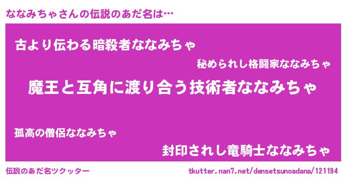 | ヒーロー風カッコイイあだ名 | 『愛の使者ななみちゃ』『仮面ナナダー』 |