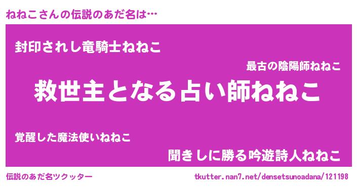 | ヒーロー風カッコイイあだ名 | 『天空の使者ねねこ』『究極戦士ネネコ』 |