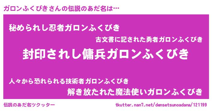 | ヒーロー風カッコイイあだ名 | 『最強戦士ガロンフクビキ』 |