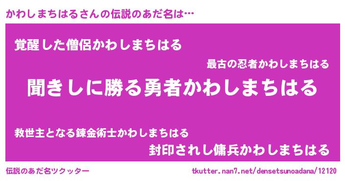 | 意味不明あだ名 | 『住所不定無職かわしまちはる(95歳)』 |