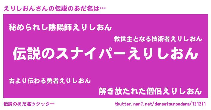 | 胡散臭い通販商品みたいなあだ名 | 『必ず成功する霊験あらたかなお札…その名も「えりしおん」』 |