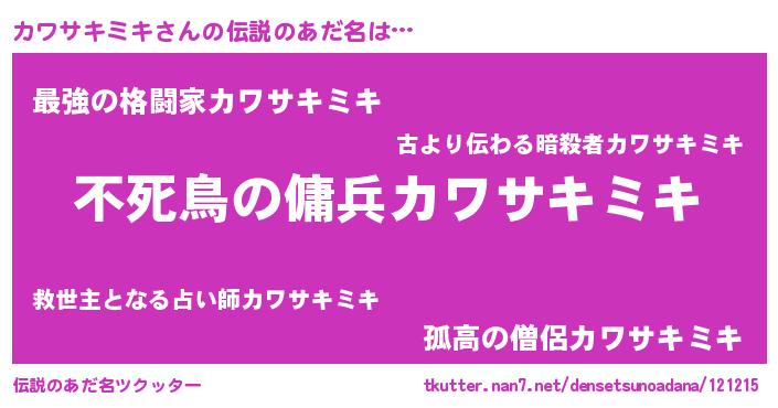 | ヒーロー風カッコイイあだ名 | 『スーパーカワサキミキ』『仮面カワダー』 |