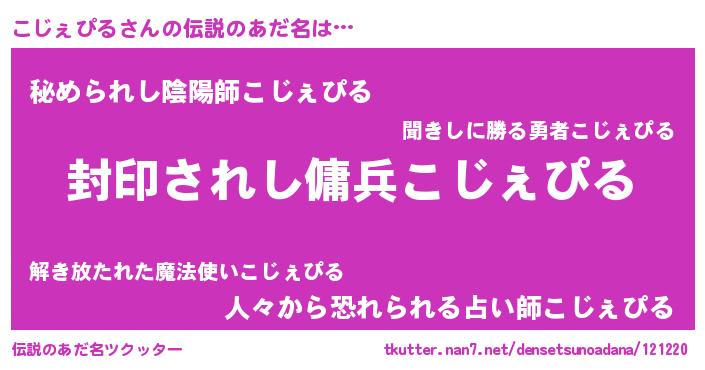 | 胡散臭い通販商品みたいなあだ名 | 『芸能人もオススメするアガリクス…その名も「こじぇぴる」』 |