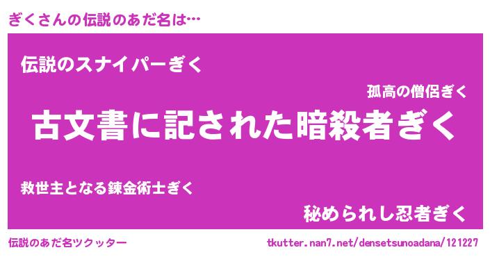 | ヘコむあだ名 | 『ぎく(笑)』『ぎくふぇ~』『つくし』 |