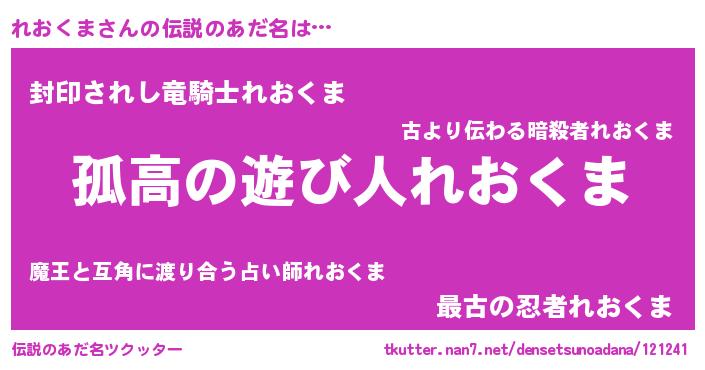 | 意味不明あだ名 | 『住所不定無職れおくま(74歳)』 |