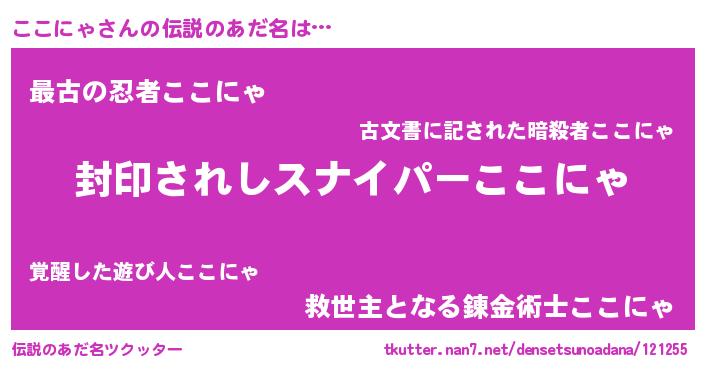 | ヒーロー風カッコイイあだ名 | 『スーパーココニャ』『愛の使者ここにゃ』 |