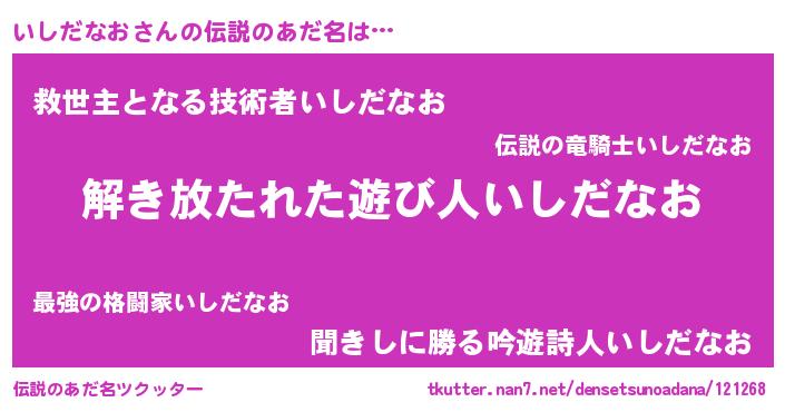 | ヒーロー風カッコイイあだ名 | 『サイバー戦士イシダナオ』 |