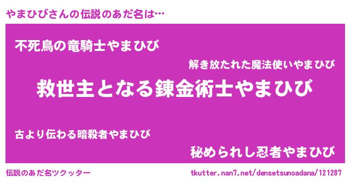 | ヒーロー風カッコイイあだ名 | 『慈愛の使者やまひび』『黄金騎士ヤマ』 |
