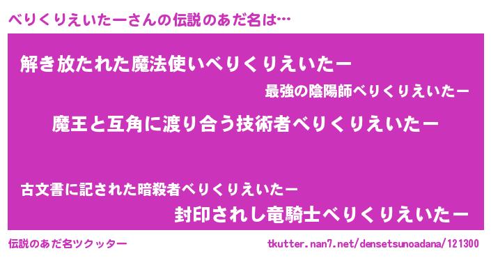 | 意味不明あだ名 | 『自称べりくりえいたー』 |