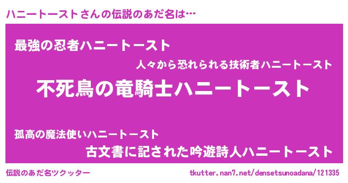 | 男性向けラノベタイトル風あだ名 | 『ハニートーストの憂鬱』 |