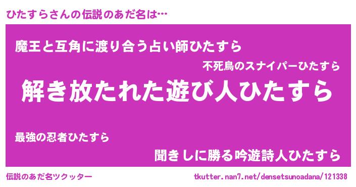 | ヒーロー風カッコイイあだ名 | 『銀牙騎士ヒタ』『最強戦士ヒタスラ』 |