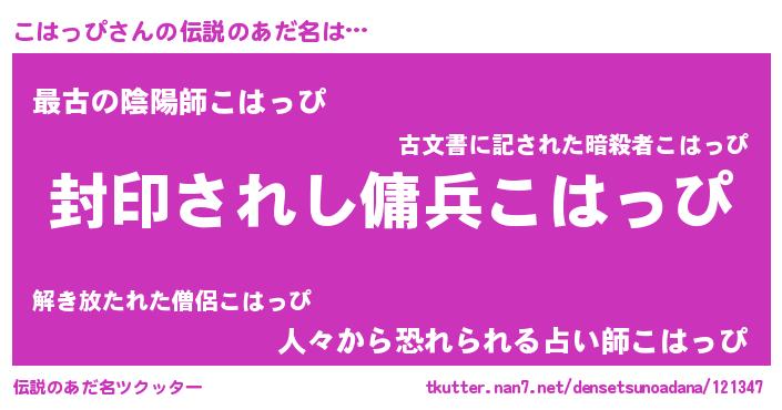 | 胡散臭い通販商品みたいなあだ名 | 『億万長者になれる水晶球…その名も「こはっぴ」』 |