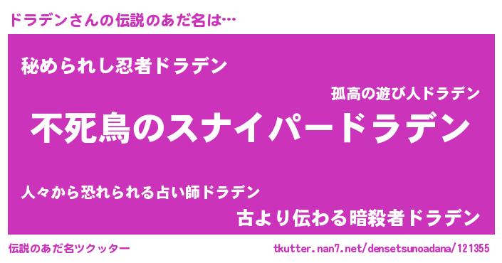 | 意味不明あだ名 | 『もやし科ドラデン属』『自称ドラデン』 |