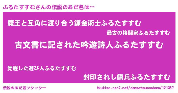 | 意味不明あだ名 | 『自称ふるたすすむ』 |