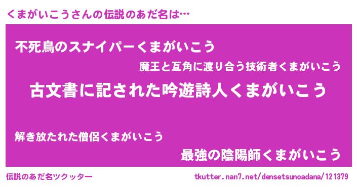 | ヒーロー風カッコイイあだ名 | 『ネオクマガイコウ』 |