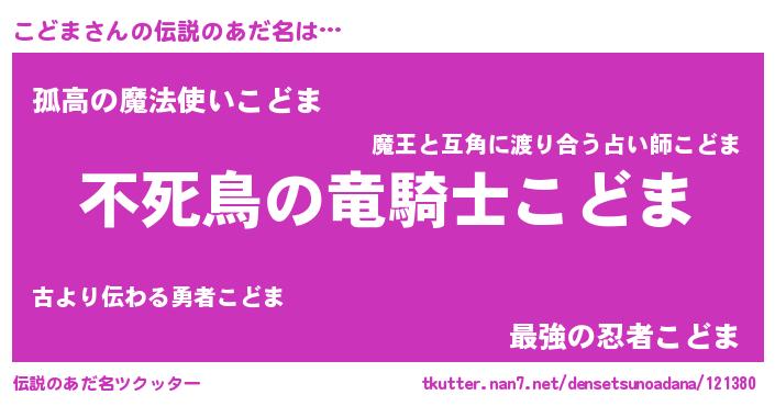 | 意味不明あだ名 | 『住所不定無職こどま(5歳)』 |
