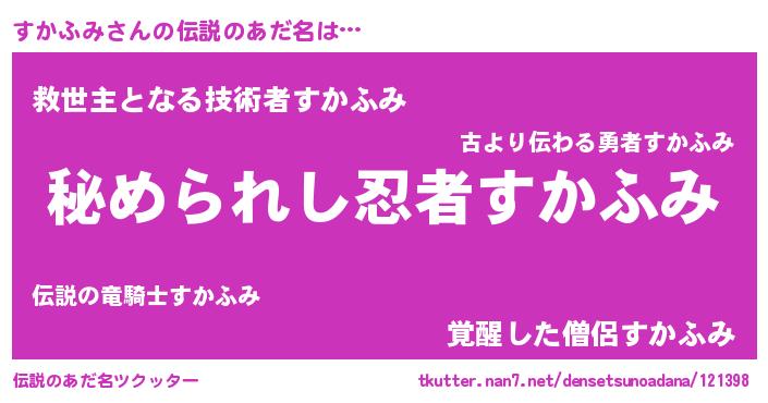 | ヒーロー風カッコイイあだ名 | 『ウルトラすかふみマン』『幻影騎士スカ』 |